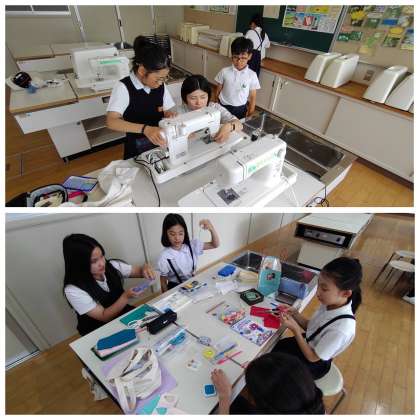 「家庭科クラブ」では、手芸に取り組んでいました。フェルトを思い描く形に切ったり、ミシンの使い方を教わったりして作っていました。