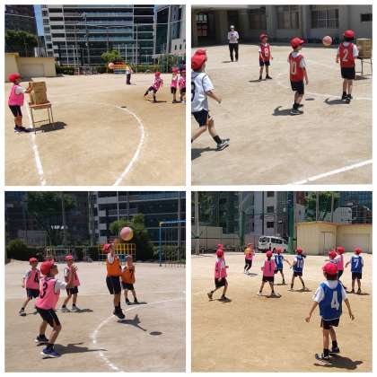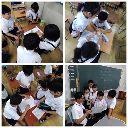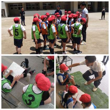 本校では「協働的な学びを通して互いに高め合う子どもを育てる」をテーマに授業研究会を実施しています。今回の授業は、3年生の体育「ハンドボール」の学習でした。まず、朝のステップアップタイムに、今日の「かくれミッション」を考えました。「パスをしやすくする」「全員で3点をめざす」「友だちに次がんばろうと思える声かけをする」など、話し合ったことをまとめ、練習や作戦も考えました。続いて、授業の時間です。練習時間では、攻撃と守備に分かれてパスをしたり、順番にシュートをしたりと、自分たちに必要な内容に取り組みました。そして、いよいよ試合の開始です。「パスを回そう!」「おしい!つぎがんばろう!」など、班で声をかけ合う姿がたくさん見られ、協力してプレーすることができました。試合後には、かくれミッションが達成できたのかを振り返りました。自分のプレーの成長だけでなく、友だちの素敵な姿を見つけている子もいました。