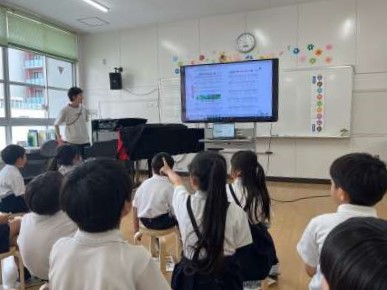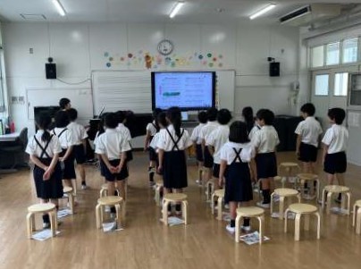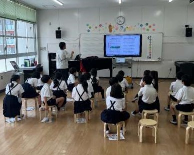 2年生の音楽の時間です。「ドレミのうた」や「手のひらをたいように」を、動作をつけて楽しんで歌うことができました。もうすぐ行われる歌のテストに向けて、はりきって歌っています。