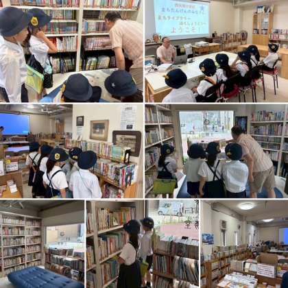 2年生の子どもたちが、生活科の学習で「町たんけん」に出かけました。自分が行きたい場所を選び、グループに分かれて探検します。今日は、校区内の4つの場所を探検しました。