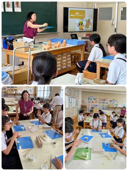 6年生が「近つ飛鳥博物館」の方による出前授業を受けました。授業では、はにわが作られていた時代の様子や、はにわの種類、作られた目的などについて学びました。その後、基本的なはにわの作り方を基に、自分たちのアイデアを取り入れたオリジナルの作品作りに挑戦しました。できあがったはにわはどれも個性豊かで、充実した学びの時間となりました。