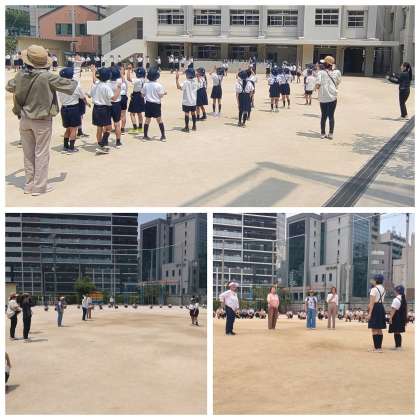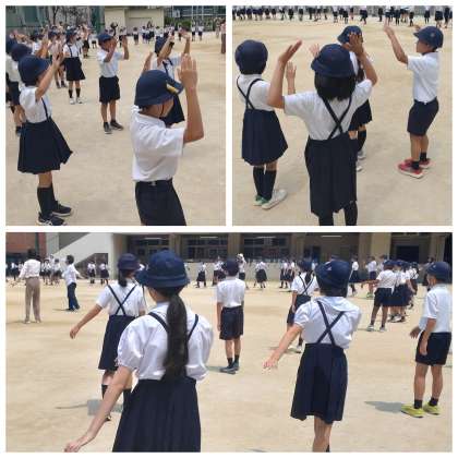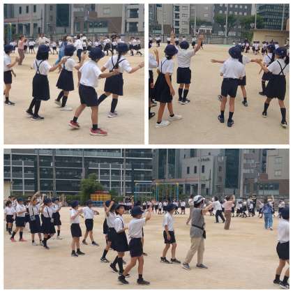 地域の女性会の方々とPTA地域委員のみなさんのご協力を得て、「西天満音頭」を一緒に踊りました。歌詞の「たくましく」での手の動かし方を詳しく教えていただき、練習をする前よりも上手に踊れるようになりました。最後には、児童代表のあいさつと感謝の気持ちをみんなで伝えました。8月の菅南・西天満祭でも、ぜひみんなで楽しく踊りましょう。