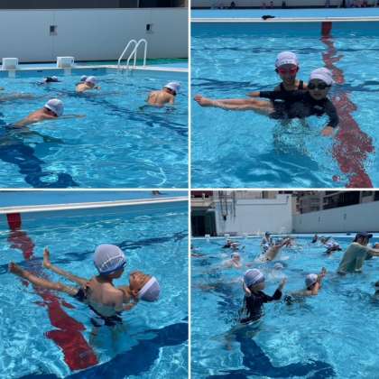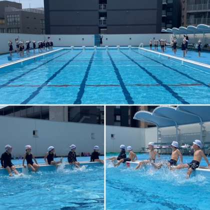 1年生がプール開きをおこないました。小学校の大きなプールに初めて入りましたが、だれもこわがることなく、笑顔で活動することができました。これからも楽しくプールでの学習に取り組んでいきましょうね。