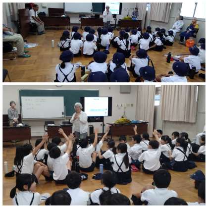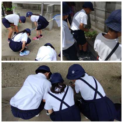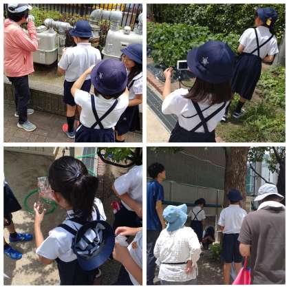大阪市環境局の職員の方にお越しいただき、4年生の子どもたちに「生き物さがし」の授業をおこなっていただきました。西天満小学校の校庭や中庭にはどのような生き物がいるのか、グループごとに探して回りました。また、見つけた生き物は何という種類なのか、講師の先生に教えていただきました。学校の中だけで多くの種類の植物や昆虫がいることに子どもたちは驚いていました。生き物のおもしろさや、生物多様性の大切さについて学ぶことができました。