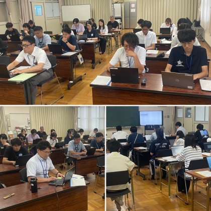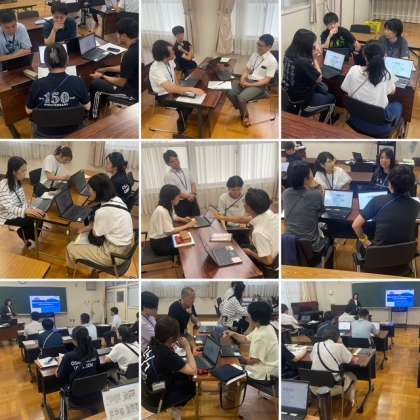 1学期に実践してきた授業研究会の振り返りを、教員全体で行いました。PCの付箋アプリを使って、各自で成果や課題を出し合ったあと、グループごとに意見交換しました。今回の反省点を踏まえて、2学期からの校内研究がさらに実のあるものになるよう、努めていきたいと思います。