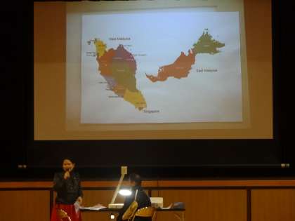 マレーシアから来日した児童の保護者の方が、ゲストティーチャーとして全学年の児童に、食べ物や服装など、マレーシアの生活や環境について、たくさんの写真をもとにお話ししてくださいました。