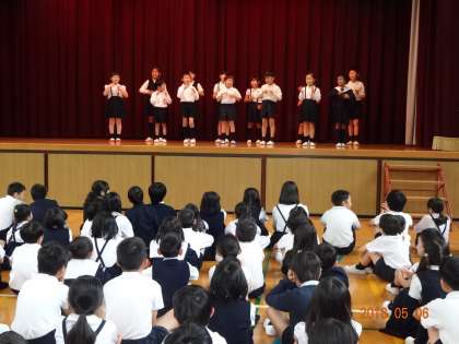 全校遠足で行った、たてわり班によるオリエンテーリングの結果発表会をしました。
