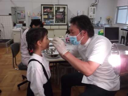 低学年の歯科検診を、中谷歯科校医先生にしていただきました。1年生は初めての歯科検診です。みんな静かに順番を待ち、検診をしていただきました。