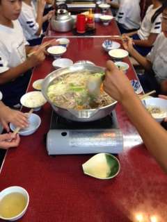 自分で削った竹箸で、食欲もりもり。御飯のおかわりも次々にしています。