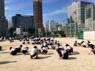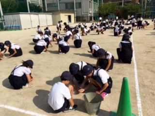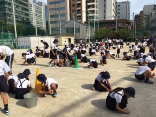 運動会に向けて、運動場の小石拾いをしました。