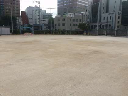 トンボなどを使って一旦、砂を集めました。その後、ふるいにかけて細かい砂だけを運動場に撒いていきました。