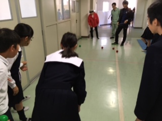 高学年は、ペタングを楽しみました。はじめは、ルールになれのが精一杯でした。でも、だんだん、白熱したゲームと、なりました。