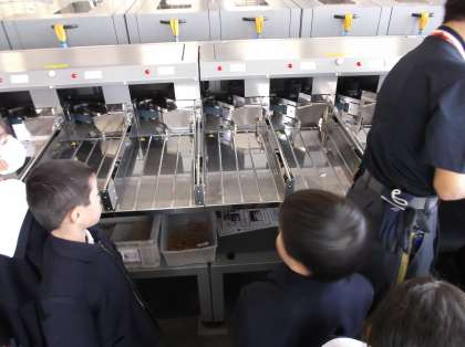 2月7日(火)に2年生は生活科の学習で、大阪北郵便局に見学へ行きました。淀屋橋の駅で、一人一人が自分で切符を購入しました。お金を大切にしながら、券売機にお金を入れていました。行先ボタンを探しながら、どの子も真剣な様子でした。