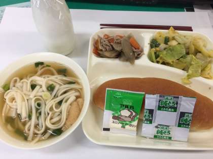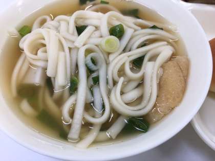 なにわうどんは、少しかためで甘い味付けでした。温かくてとても美味しかったです。