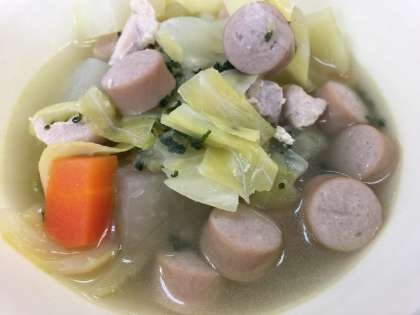 鶏肉と野菜のスープ煮は、塩、こしょう、うす口しょうゆで味付けされて、とても美味しくいただきました。