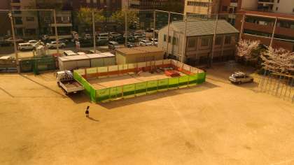校庭の事務所仮設