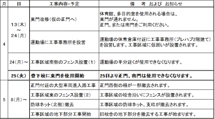 保護者様向けのお知らせにも掲載いたしました。工事日程(予定)と登下校路をお知らせいたします。