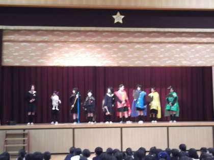 今日は健康委員会の児童が、かぜの予防を呼びかける劇をしました。