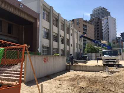 正門あたりが、こんな姿になりました。大型工事車両の搬入口になります。