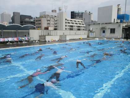 朝から気温も水温も30度を超える中、着衣泳の勉強を行いました。暑くなって、水辺に行く機会も増えるこの季節、あってはならないことですが、自分の身を守るための勉強です。
