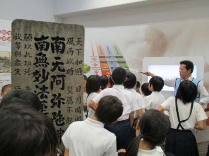 阿波座にある「津波・高潮ステーション」に社会見学に行きました。始まる前は、津波と高潮の区別のつかない子どもがほとんどでしたが、映像や具体的な展示物を見たり、詳しい説明を聞いたりすることで、自然災害の恐ろしさについて詳しく学ぶことができました。