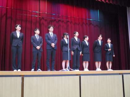 また、本日は教育実習(8名)最終日ということで、一人ひとり挨拶をしました。