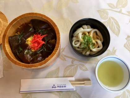 神宮会館で 伊勢うどんと手こね寿司をいただきました。