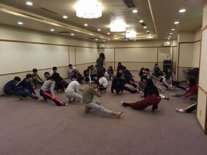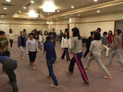 まだまだ夢の中にいる子も、体操で、お目覚めです。