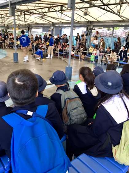 ペンギンのお散歩ショーを観ています。