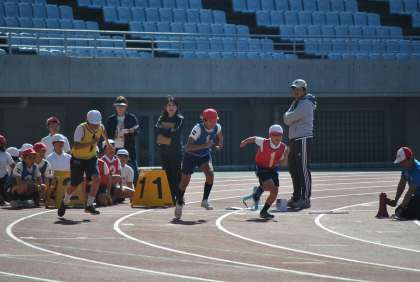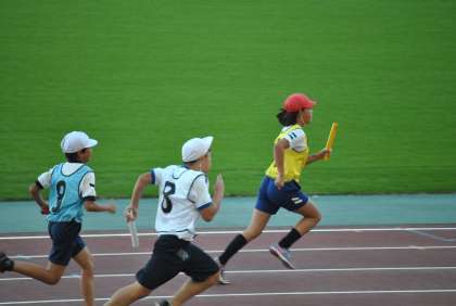 最後は、4×100mリレー。2チーム出場しました。スタンドからの大きな声援を受けてリレーに出場した子ども達はバトンをつなぎました。