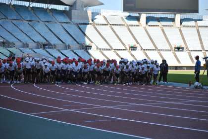 子ども達は、大きなスタジアムを見渡して大興奮していました。
