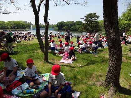 とても良い天気に恵まれ、長居公園に全校遠足に行きました。