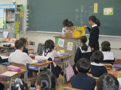 朝の読書タイムに1年生から3年生の教室に図書委員会のメンバーが読み聞かせに行きました。
