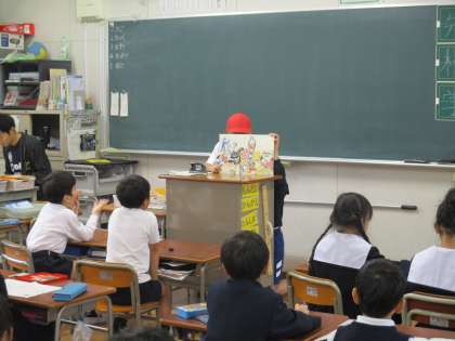 読み聞かせに行く学年に合わせて喜んでもらえる紙芝居を相談しながら選びました。少し緊張しながら、それぞれの教室で読み聞かせをしていました。