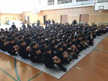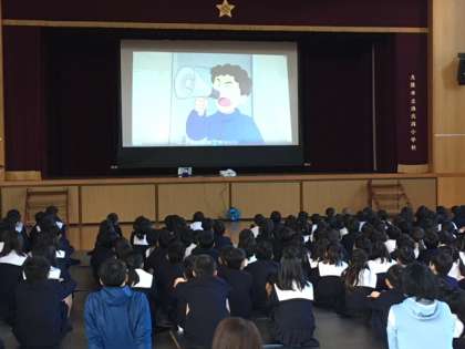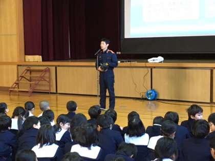 まずは、校長先生の話に続いて、津波についてDVDを観た後、北消防署の方からお話を聞きました。