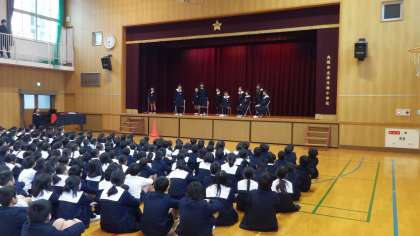 本日の集会は、かけ足タイムのお知らせや放送委員会からんお知らせ、そして保健委員会による発表でした。