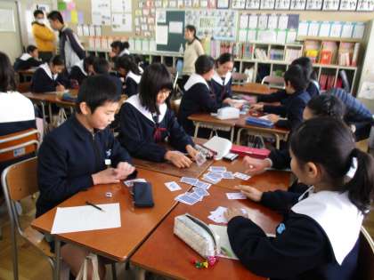 最後に教えていただいた『正の数・負の数』をトランプを使って数の大きさ比べをしました。とても楽しく学習をすることができました。