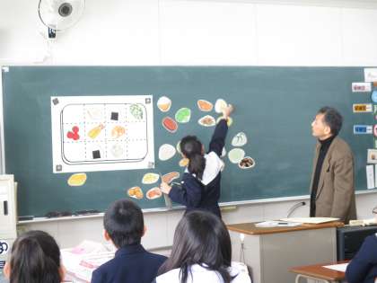 今日はお弁当を題材に『主食・主菜・副菜』の学習をしました。