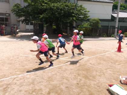 5年生では、体育科でリレーの学習を進めています。