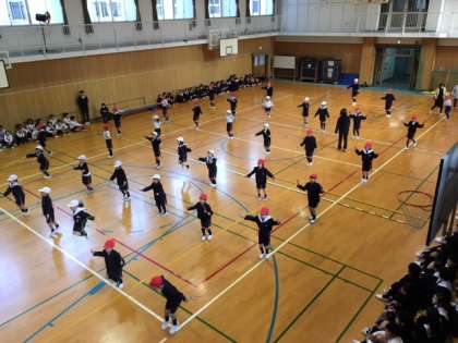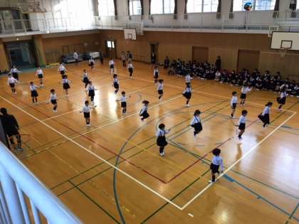 1年生から3年生までが1分間なわとびにチャレンジしました。