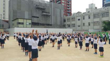 最後は、月曜の習慣になりつつあるラジオ体操です。今日も元気に全校児童でラジオ体操ができました!