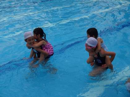 校区にある幼稚園の年長さんと一緒に、学校のプールで交流しました。