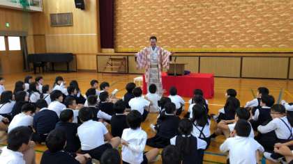 3、4年生は、旭堂南海さんによる講談を聞きました。「わらしべ長者」や「ブレーメンの音楽隊」などを面白おかしく講談していただき、子どもたちは、お話に引き込まれていました。
