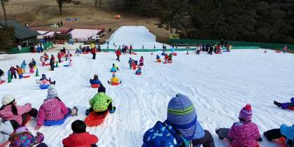 周りには全く雪が無く少し心配しましたが、ゲレンデには十分な人工の雪があり、きれいに整備されていました。良い思い出ができたたかな?