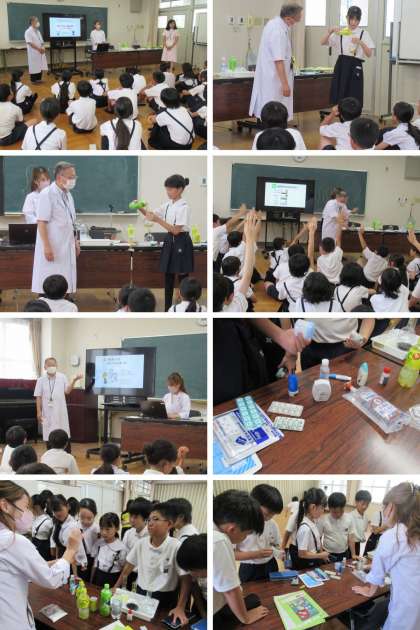 6年生の子どもたちが、学校薬剤師の奥田先生から、正しい薬の使い方についてお話をうかがいました。決められた量の薬を、決められた時間に服用することが大切だということ、また、薬を水以外でのむと効果が下がるということなどがわかりました。さらに、薬物乱用のおそろしさについても、具体的に理解することができました。自分自身の健康を守るためにも、薬を正しく使ってほしいと思います。