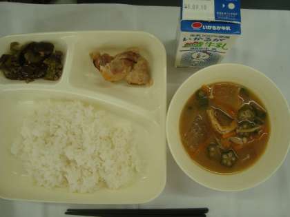 「鶏肉のてり焼き とうがんのみそ汁 なすのそぼろいため ごはん 牛乳」