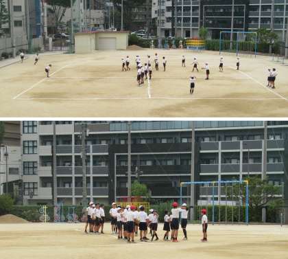 「運動クラブ」では、運動Aクラブと運動Bクラブが合同で4面ドッジボールをし、力いっぱい運動を楽しみました。