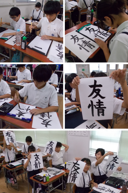 6年生が毛筆書写の学習で「友情」という文字に取り組みました。子どもたちは、ただ上手に字を書くだけではなく、「友情」という言葉のあたたかさを感じながら、力強く、そして丁寧に筆を運んでいました。清書の中から教室に掲示する一枚を選ぶときには、「この中やったらどれがいいと思う?」と、友だち同士で相談し合う姿も見られました。