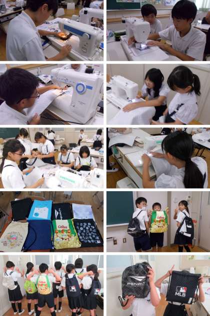 6年生が家庭科の学習でナップザックづくりに取り組みました。5年生からミシンを学習していることもあり、子どもたちは落ち着いて作業を進めていました。慣れた手つきでミシンを操作し、友だちと声をかけ合いながらていねいに仕上げていました。完成したナップザックは、世界に一つだけのオリジナル。完成させた子どもたちは「上手にできた!」「どんな時に使おうかな〜」と、とても嬉しそうでした。