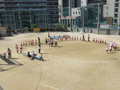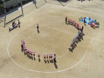 次の日曜日に本校のグラウンドで運動会を行う菅南幼稚園の子どもたちが、予行としての練習を行いました。とてもよいお天気の中、先生方のおっしゃることをしっかりと聞いて、みんなよくがんばっていました。どうかすてきな運動会となりますように...。